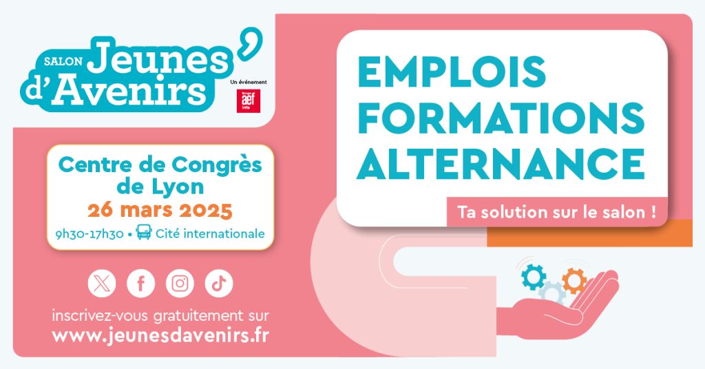 Retrouve nous au Centre de Congrès de Lyon le 26 mars prochain pour trouver l’alternance, le job ou la formation de tes rêves ! Inscris toi dés maintenant !