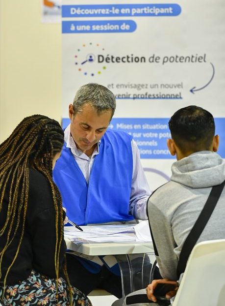 Besoin d’un conseil sur ton parcours, ton CV ou d’un coaching express avant de te lancer ? Les Gilets Bleus sont à ta disposition pour t’accompagner et t’aider tout au long du salon : n’hésite pas à aller vers eux, tu pourras les retrouver sur l’espace Conseils personnalisés, sur le Parcours de la réussite.